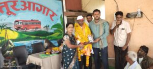 सोनवणे,बाळासाहेब देशमुख सह आगारातील बहुसंख्य चालक वाहक व कर्मचारी यांची उपस्थिती होती.