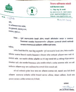 मा.आ.विजयराव भांबळे, आ,राजेश दादा विटेकर व श्री रामराव उबाळे यांनी एका लेखी पत्राद्वारे विनंती केली.